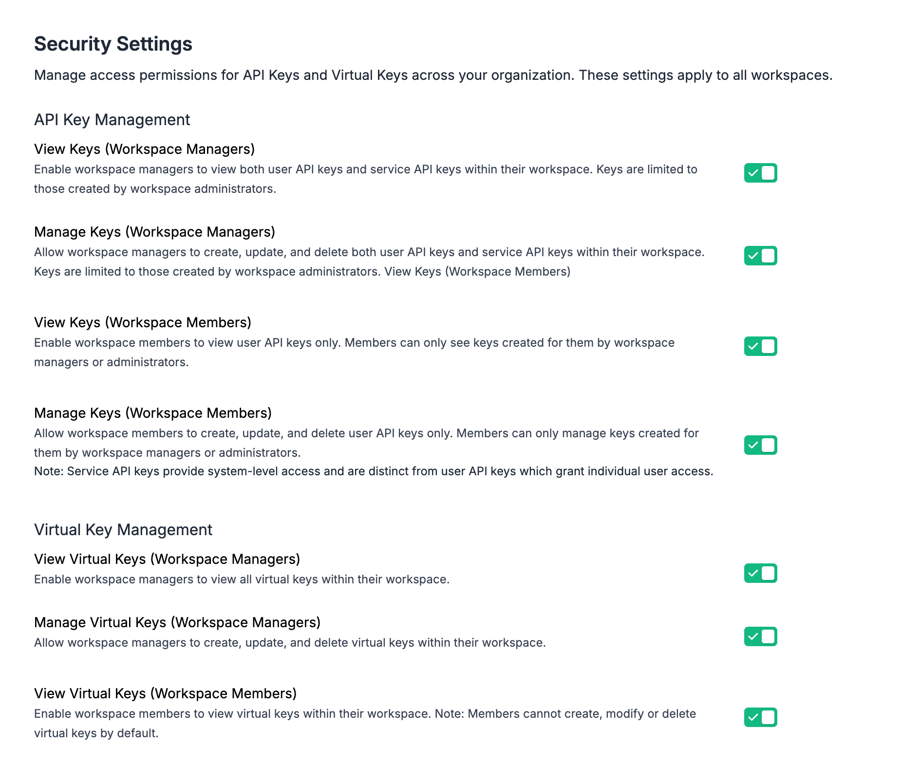 - Granular access permissions for API Keys and Virtual Keys across your organization