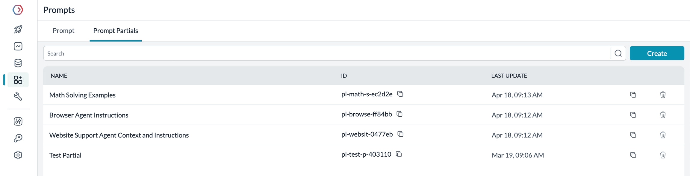 Upon saving, each Partial generates a unique ID that you can use inside prompt templates.